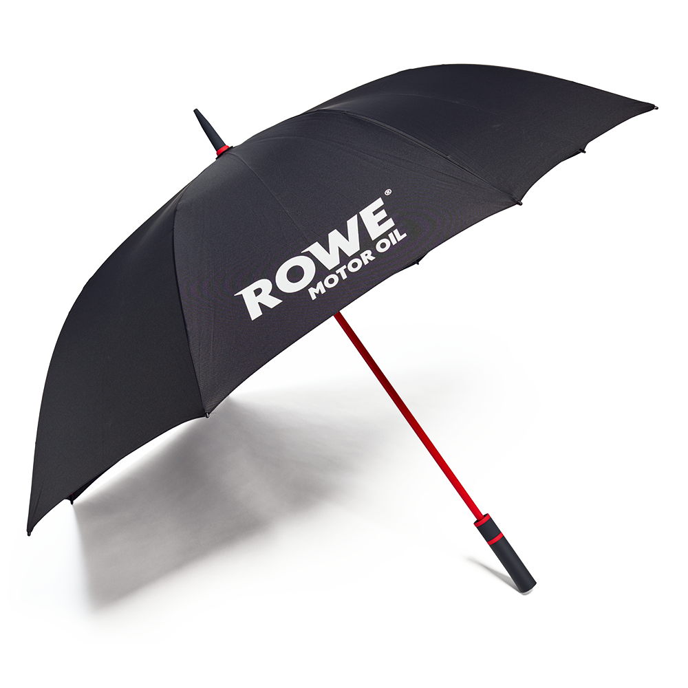 Whether it's a rainy autumn day or a sunny summer's day, the automatically opening golf umbrella protects you from any weather. The exclusive straight soft-touch handle sits comfortably in the hand. In modern anthracite with red elements. Printed with the ROWE MOTOR OIL and ROWE RACING logo.