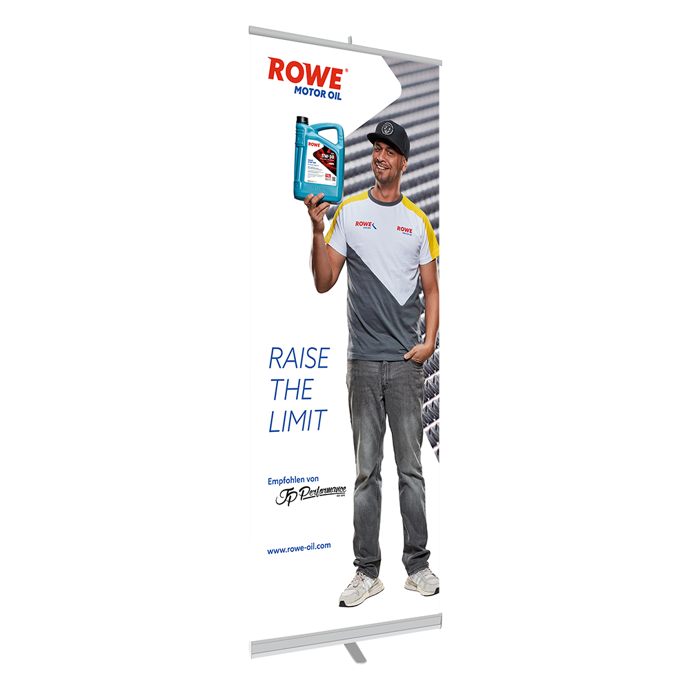280 g polyester fabric in a sturdy aluminium housing, an adjustable foot, incl. transport bag. Easy assembly and disassembly without tools. All components such as the roll-up fabric with new motif or the rack system incl. carrying case can be individually re-ordered on request.