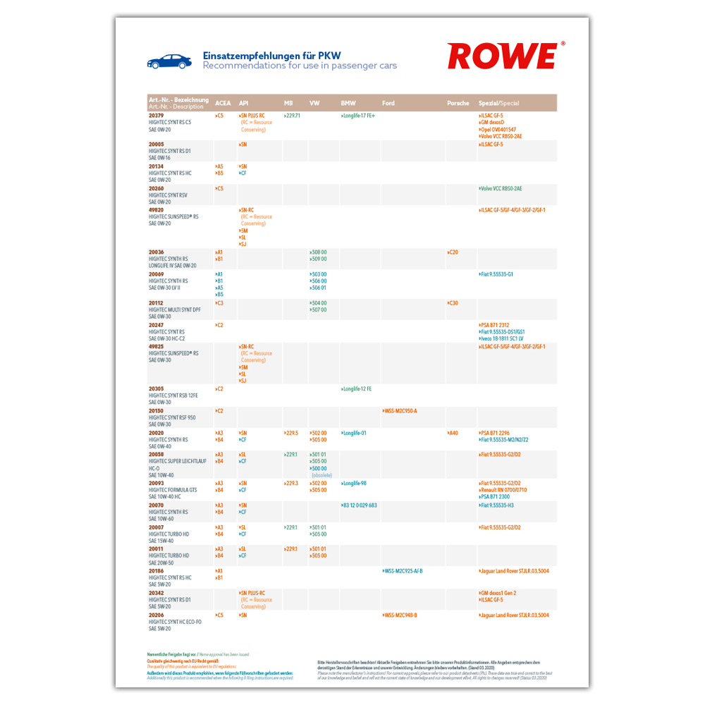 You can find out which ROWE product fulfils which usage recommendations in the en table.