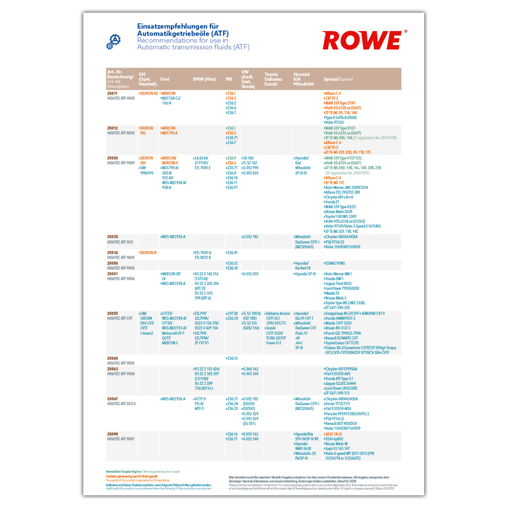 You can find out which ROWE product fulfils which usage recommendations in the clear table.