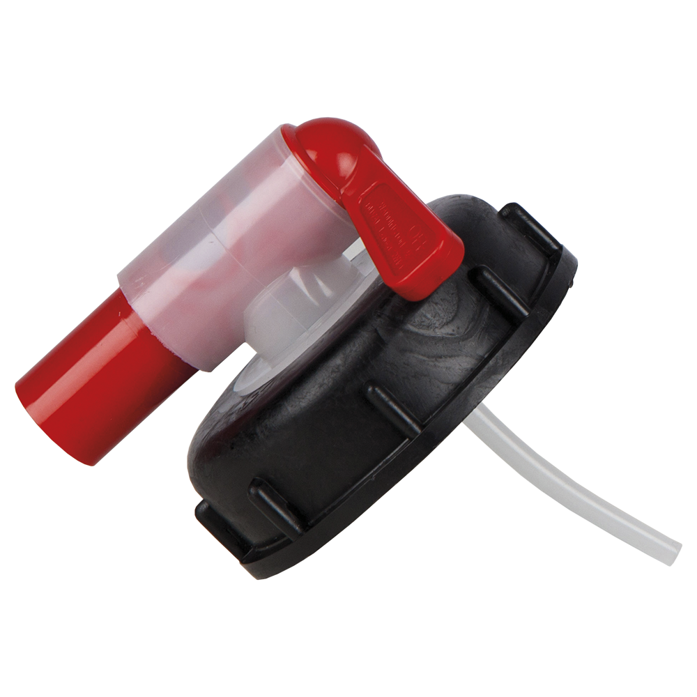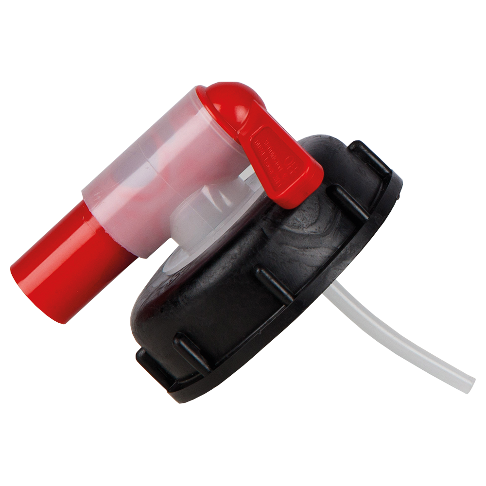 Outlet valve for 60 l plastic drums. Perfect for an easy, clean and swift transfer of liquids.
