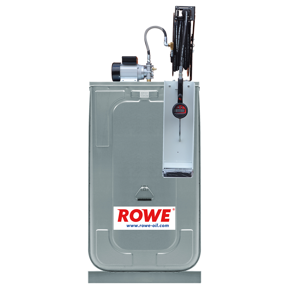 Stationary tank system for pumping lubricants, Double-walled storage and collection tank 1000 L, Level indicator, Ventilation cowling, Electric gear pump 720 W – 9 L / min, Assembly bridge, Digital manual flow meter, Bracket for HDZ with drip tray, Conveyor hose reel 15 m