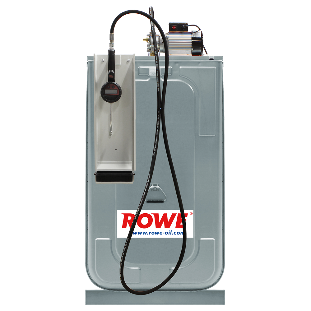 Stationary tank system for pumping lubricants, Double-walled storage and collection tank 1000 L, Level indicator, Ventilation cowling, Electric gear pump 720 W – 9 L / min, Assembly bridge, Digital manual flow meter, Bracket for HDZ with drip tray and Delivery hose 4 m
